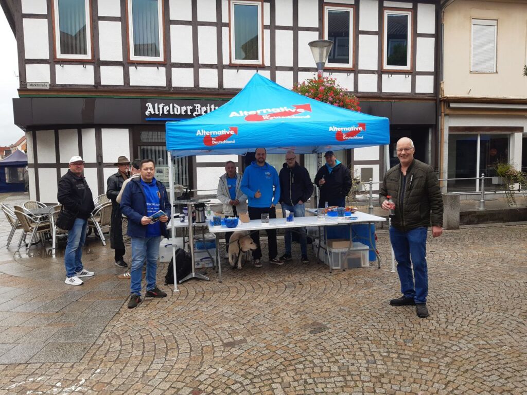 W. Weber, einer der Alfelder Initiatoren, sagte nach der Veranstaltung: „Ich möchte mich bei allen bedanken, die heute trotz Wind und Regen beim Infostand dabei waren. Viele Bürgerinnen und Bürger sind zu uns gekommen, haben Fragen gestellt und uns ihre Zustimmung signalisiert. Natürlich sind auch Passanten vorbeigekommen, die unserer Partei kritisch gegenüberstehen. Mit einigen konnten wir dennoch ins Gespräch kommen, ihre Argumente anhören und sachlich entkräften; andere haben lediglich den einen oder anderen Spruch in unsere Richtung geschickt. Insgesamt konnten wir zahlreiche interessante Gespräche führen und sogar einige neue Mitglieder gewinnen. Besonderer Dank gilt unserem starken Team.“
