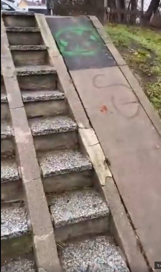 Aber was macht die Stadtverwaltung: Sie lehnt erstmal pauschal ab, weil kein Geld da ist und weist auf verlegte Rohre hin, die nicht dauerhaft überbaut werden dürften. Sind diese Rohre bei der Treppe nebenan nicht auch vorhanden? Und eine Rampe wäre laut Stadtverwaltung „zu steil“. Wenn man da die Treppensteigung für Rollatoren und Kinderwagen sieht, zieht dieses Argument nicht wirklich.